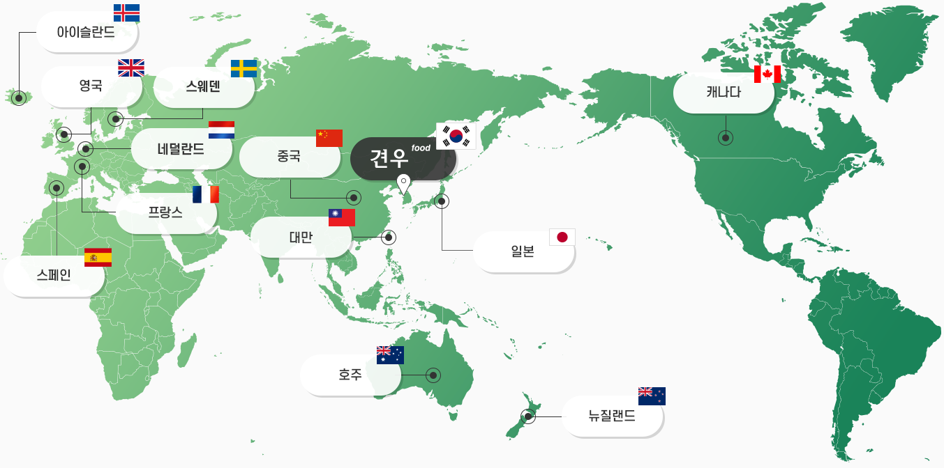 * 산지에서 직접 구매한 신선한 배와 후추로 만든 견우푸드 소스는 전세계 코스트코매장 (일본, 호주, 대만, 중국, 캐나다, 영국, 스웨덴, 아이슬란드, 스페인, 프랑스, 뉴질랜드 등)에 공급하고 있으며, K-FOOD 열풍에 힘입어 우리나라의 불고기맛을 세계에 알리고 있습니다.